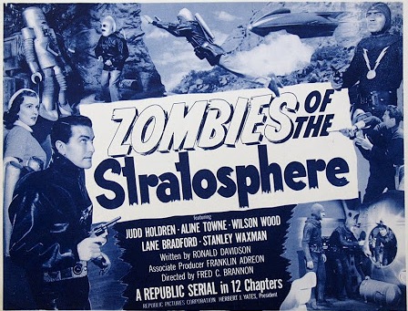 The 'flying jacket' would return later in 1952 for the brilliantly titled Zombies Of The Stratosphere. Of course, there were no walking-dead in this adventure, just Martians, including a novice Leonard Nimoy (who was later to star in the TV series Mission Impossible and of course Star Trek). The hero was Rocket Man, played by stalwart Judd Holdren this time. Robots, ray-guns, wild devices, even more stock-footage, they all appeared in this entry which, again, has a cult-following today.